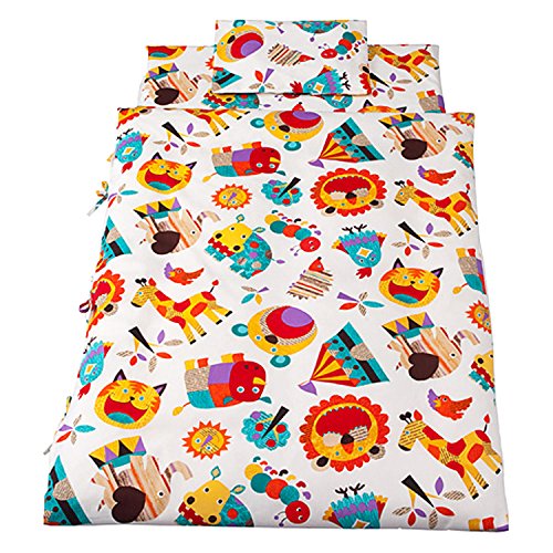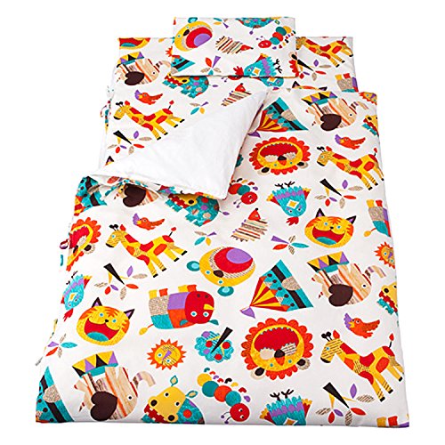 お昼寝布団セット 7点セット どうぶつ柄 ZOO ホワイト 日本製 ふとんカバー 開閉形状 3ヶ所ヒモタイプ