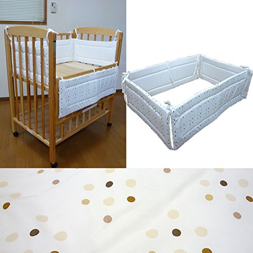 日本製 ミニベッド用 四方ガードマット ポルカドット(セピア)ベッドガード ベビーベッド内寸90×60cm用