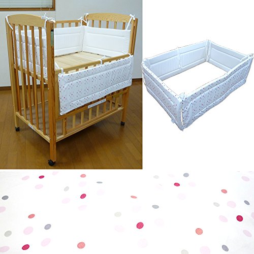 日本製 ミニベッド用 四方ガードマット ポルカドット(ピンク)ベッドガード ベビーベッド内寸90×60cm用