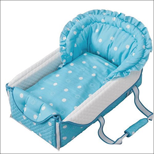 赤ちゃんを寝かせておく、クーファンとしてはもちろん、おむつ替え、お昼寝マット、プレイマット、バッグにと、5通りに使えるマルチなアイテム、バッグ・デ・クーハンに可愛い水玉柄が登場しました。