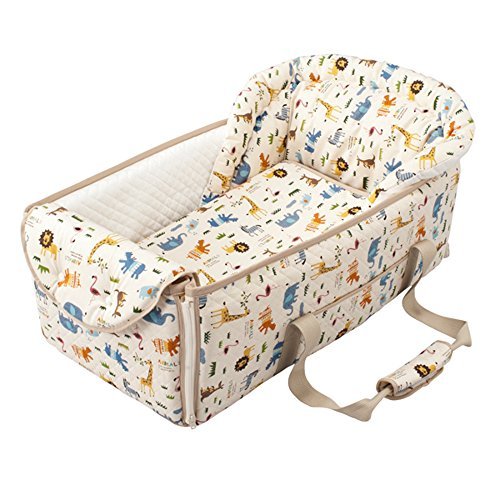 フジキ お昼ね布団にもなるクーファン アニマル柄 (ホワイト) 日本製 クーファン クーハン ベビーキャリー バスケット かご 赤ちゃん 持ち運び