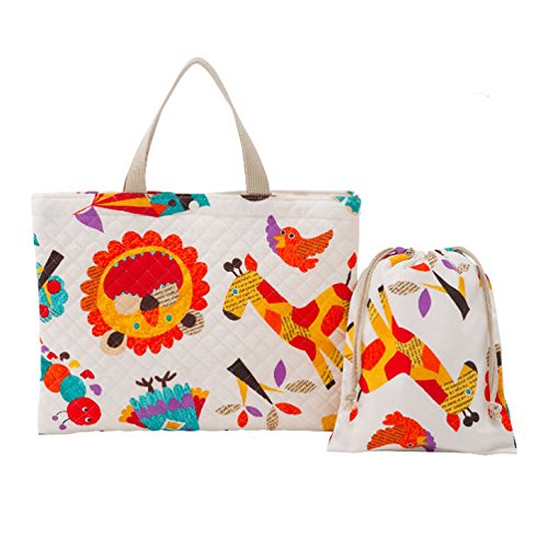 キルティング レッスンバッグ 巾着袋つき ZOO ホワイト