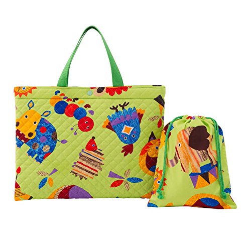 キルティング レッスンバッグ 巾着袋つき ZOO グリーン