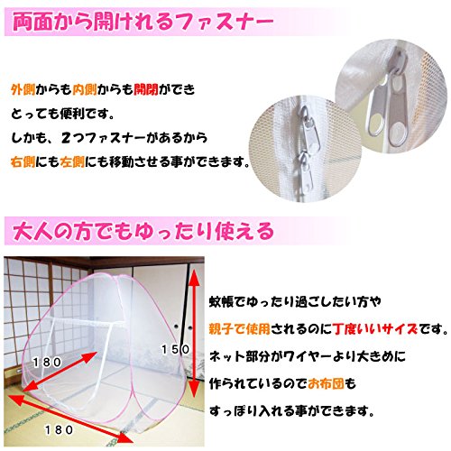 蚊帳 ワンタッチ蚊帳 ダブル 子供用 1.8mx1.8m 桃