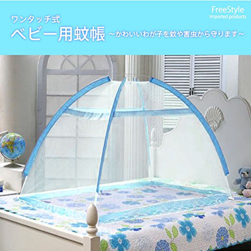 蚊帳 ベビーベッド用 ワンタッチ 子供用 90×140cm 青