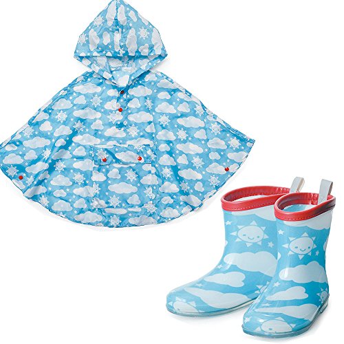 ヒ゜チョン ハ゜ッカフ゛ルホ゜ンチョ ソラ(100cm)&レインブーツ(16cm) ポンチョ レインコート キッズ 100cm 子供 雨合羽 長靴 キッズ 16cm レインブーツ レインポンチョ 女の子 男の子