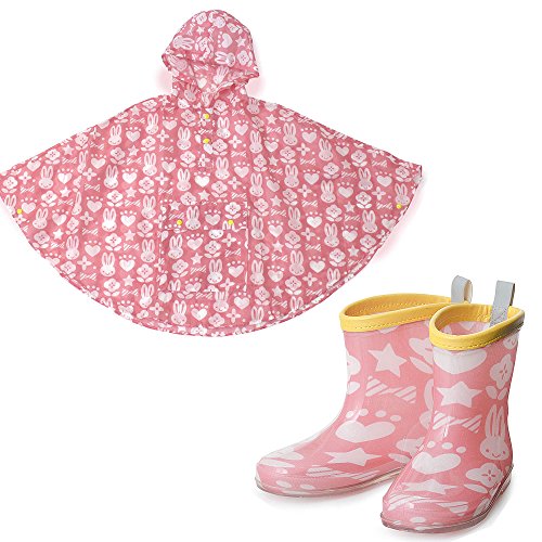 ヒ゜チョン ハ゜ッカフ゛ルホ゜ンチョ ウサキ゛(120cm)&レインブーツ(14cm) ポンチョ レインコート キッズ 120cm 子供 雨合羽 長靴 キッズ 14cm レインブーツ レインポンチョ 女の子 男の子