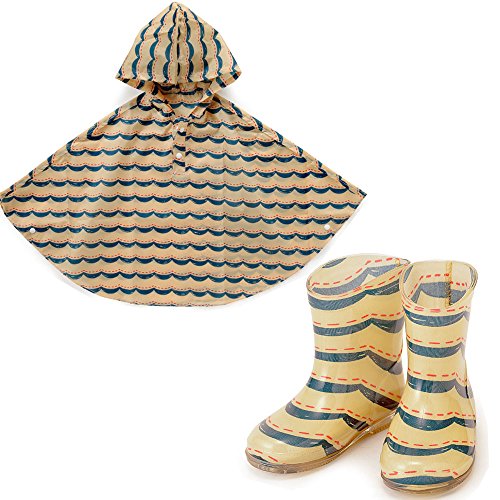 LATAKKO キッス゛ホ゜ンチョ ウェーフ゛(100cm)&レインブーツ(16cm) ポンチョ レインコート キッズ 100cm 子供 雨合羽 長靴 キッズ 16cm レインブーツ レインポンチョ 女の子 男の子