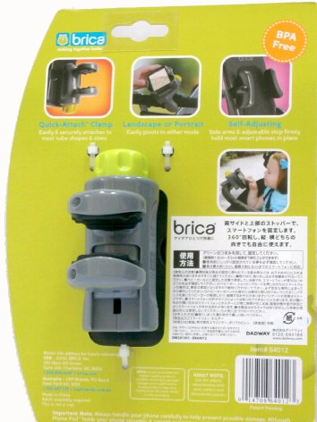 便利で重宝なスマホホルダーが出来ました。ひとつあるととっても重宝いたします。 ベビーカーでお出かけのとき、スマホに電話がかかってきたり、ちょっと調べもをしたい時などとっても便利です まず。背面に付いているクリップでベビーカーに取り付けましょう。大き目の金具ですのでしっかりと取り付けられます。 そしてママのスマホを両サイドと上部のストッパーでしっかりと固定しましょう こうしておけば、いちいちスマホを取り出すことなく、操作が出来ます。 いつ電話が掛かってきても平気だし、ちょっと調べ物をしたいときなどとっても便利です 本体は360度回転いたしますので縦でも横でも使えます。 また、赤ちゃんの目の前に取り付けてあげれば、おもちゃのスマホをセットして遊ばせることも出来ます。 あの人気ブランド、ブリカの商品ですのでしっかりとしています。親子で使える便利グッズです。 出産お祝いやちょっとしたギフトにもどうぞ サイズ=8cmx12cmx13.5cm