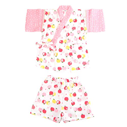 【100cm】「りんごと小花」女の子用 日本製 やわらか二重ガーゼ甚平