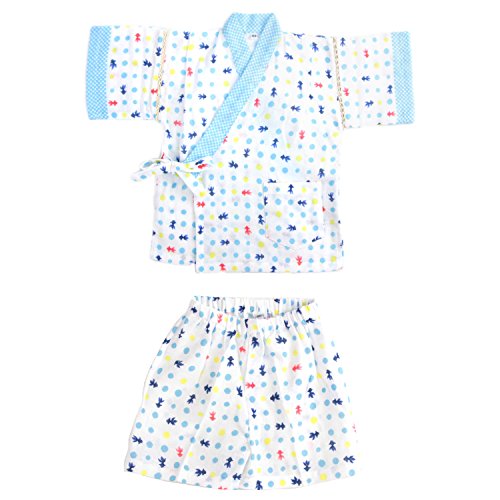 【90cm】「水玉と金魚」男の子用 日本製 やわらか二重ガーゼ甚平