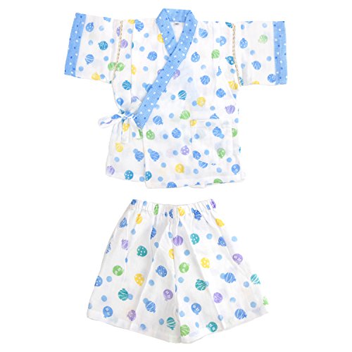 【100cm】「水玉とヨーヨー」男の子用 日本製 やわらか二重ガーゼ甚平