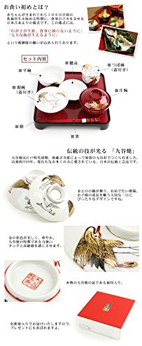 〔zu〕女の子用 九谷焼百日膳セット 「金鶴」 お食い初め