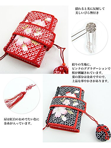 「絞り柄桜刺繍入りはこせこ 黒」七五三 7歳用 女児 箱迫 筥迫 びら簪付き