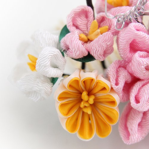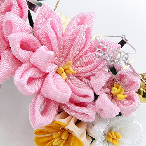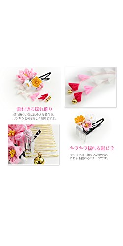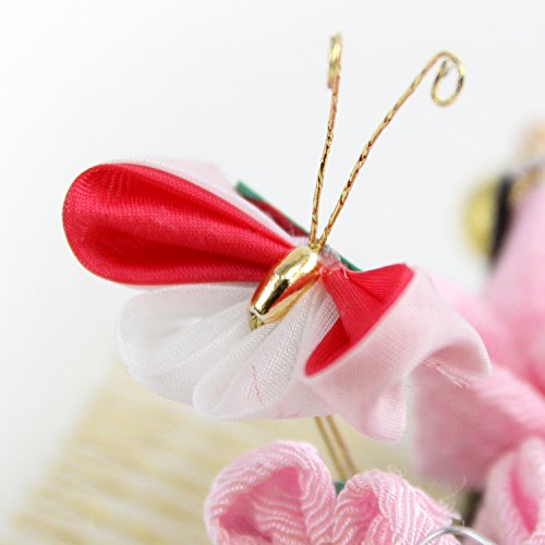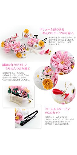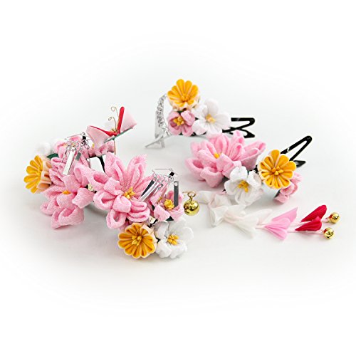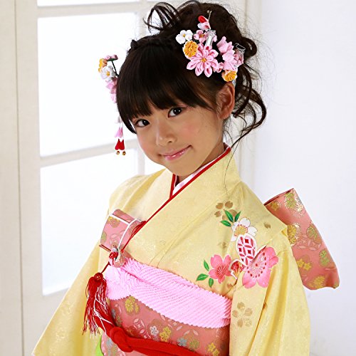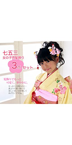 七五三 女の子用 蝶&花モチーフ 髪飾り 3点セット ピンク×イエロー