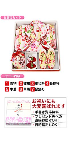 - 【セット内容】着物・被布コート・重ね衿・長襦袢・髪飾り・巾着・草履(実寸17.5cm)