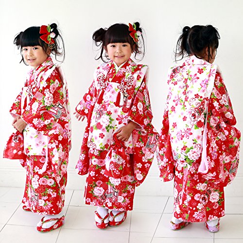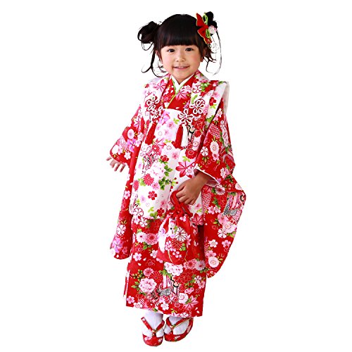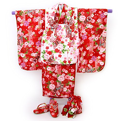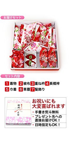 - 【セット内容】着物・被布コート・重ね衿・長襦袢・髪飾り・巾着・草履(実寸17.5cm)