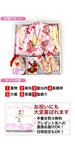 - 【セット内容】着物・被布コート・重ね衿・長襦袢・髪飾り・巾着・草履(実寸17.5cm)