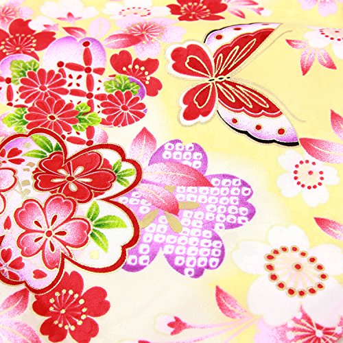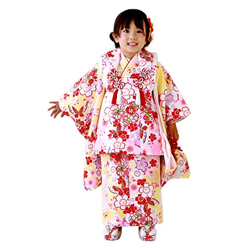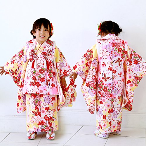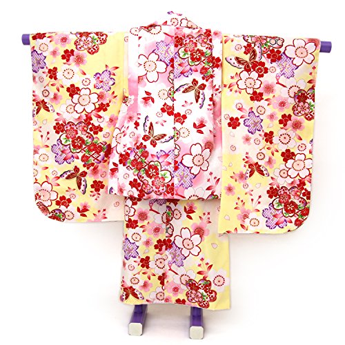 「【77】黄地に桜と蝶/被布:白」七五三 着物 3歳 被布着物7点セット
