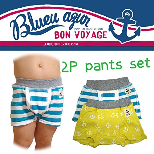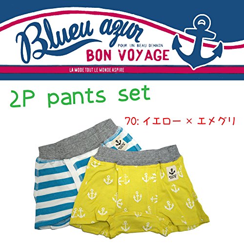 BLUEU AZURブルーアズール 2P肌着パンツセット イカリ&ボーダー 90cm/100cm/110cm/120cm/130cm 【商品詳細】 素材:(本体)綿100% カラー:30ブルー×赤/70イエロー×エメグリ サイズ :90cm/100cm/110cm/120cm/130cm