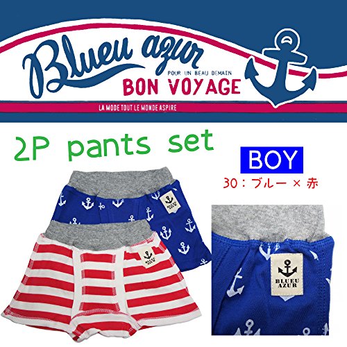 (ブルーアズール)BLUEU AZUR 2P肌着パンツセット イカリ&ボーダー 130cm 30ブルー×赤