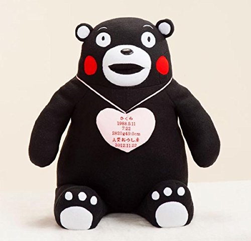 ご存知、熊本のアイドル「くまモン」のウェイトドールです。 ハート形のプレートに記念の刺しゅうが入ります。 刺しゅう項目はお名前、生年月日、出生時刻、体重、身長、血液型、星座、記念日の8項目。 刺しゅう項目は省略出来ます。 お名前の刺しゅうは「ひらがな」「漢字」「ローマ字」を選択できます。