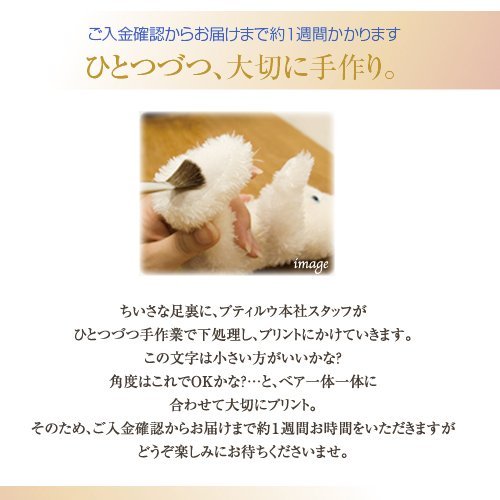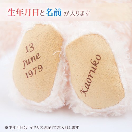 - べアの身長12センチ 足裏に名前、生年月日(あるいは記念日)が入ります