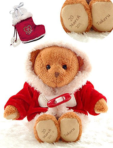 - セット内容:TB 1体+レッドコート1着+巾着ブーツ 両足足裏プリント(右足:記念日/左足:お名前)