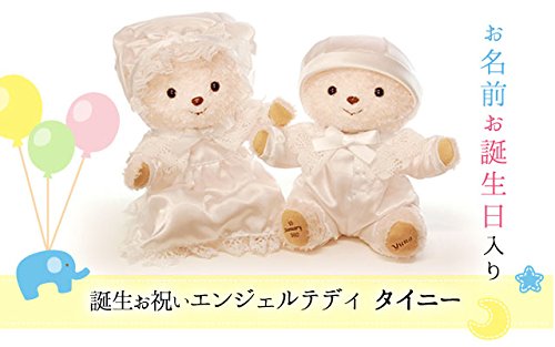 《お名前 / 誕生日 プリント入り》出産祝い 誕生お祝い エンジェル テディ タイニー【身長13cm タイニーサイズ】 プレゼント メモリアルギフト 名入れ (ドレス)