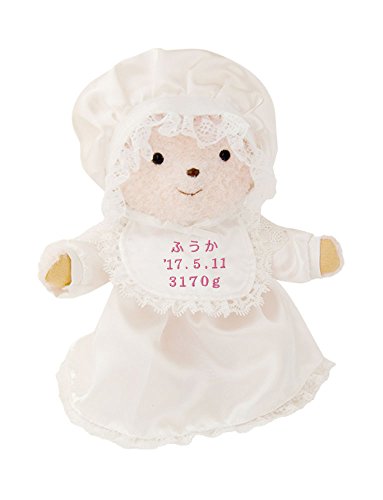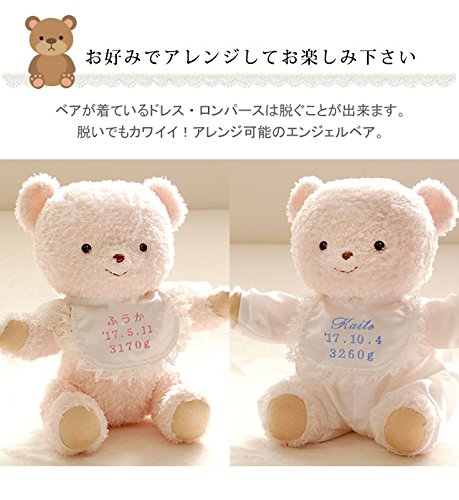 《お名前 / 誕生日 / 体重 刺繍入り》 誕生 お祝い エンジェルテディ ドレス(ピンク刺繍)