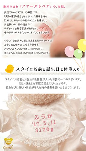 - セット内容 エンジェルテディ/スタイ/専用巾着袋/ギフトボックス/スタイにお誕生日とお名前と体重を刺繍