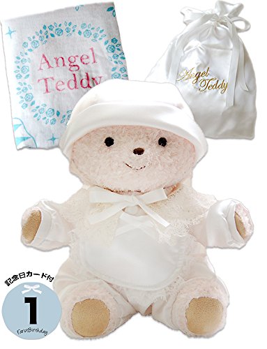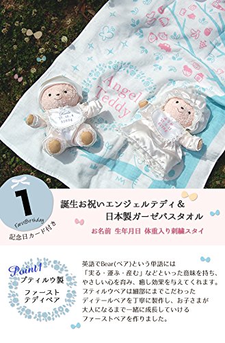 - セット内容:エンジェルテディ1体 / テディ専用巾着袋 1枚 /日本製ガーゼバスタオル1枚 / 記念日カード6枚