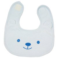 ユーモラスなフェイスデザインのスタイ。吸水性の良いタオル素材で、付け外しが簡単な面ファスナーを使用しています。