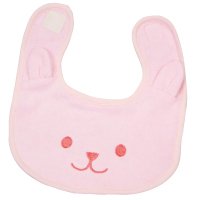 ユーモラスなフェイスデザインのスタイ。吸水性の良いタオル素材で、付け外しが簡単な面ファスナーを使用しています。