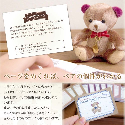- ご自分と同じ誕生日ベアの、個性や願いが描かれたバースデイブック付き。