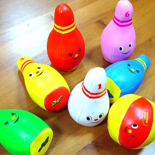 【「赤ちゃんの脳を育む本」掲載!】ボウリング遊びとは、目で見て目標を定め、ピンに向かってボールを転がすので、色々な動きや感覚が複合的に必要になるため、高度な遊びになり脳が活性化するそうです!可愛い笑顔でベビー・キッズに大人気!ベビー・キッズ雑貨の人気キャラクター「ニッキョロ」の可愛いボウリングセットです。とってもやわらか素材なのでぶつかっても痛くないから安心して遊べるおもちゃです。素材も舐めても安心なものを使用しております。ボウルも2個あるので兄弟やママと一緒に遊んだりしても楽しいね!ピンは赤ちゃんが握りやすい大きさなのでにぎにぎ棒としても遊べるよ!持ち運び・収納に便利なケース付きなのが嬉しい!0~2歳のお誕生日プレゼントやお孫さんが遊びに来たときのおもちゃに用意しておくのにもいいですね♪