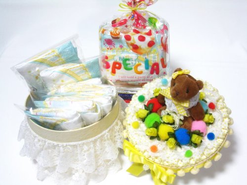 - サイズ::レースを含め直径21cm×高さ18cm 個別包装のおむつが7枚内包されています。さらにおむつが5枚入りの小袋が付いてきます