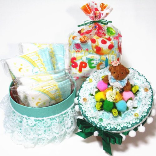 出産祝いのギフトで 赤ちゃんの健やかな成長の願いを込めて… 1段おむつケーキのボックスタイプ!! レースやお花がふんだんで豪華! 「出産祝いのオムツケーキだからいつまでもそのままにしておきたい! でもおむつを使うとオムツケーキの形が壊れちゃう…」 ボックスに入ったおむつだからお使いいただいてもおむつケーキの形は壊れることなくそのまま! お好みのものを入れたり 部屋のお飾りにしたり 楽しみ方はいろいろ♪ 思い出のオムツケーキ、後々までお部屋に… ハンドメイドで一品ごと丁寧にお作りしています。 ギフトラッピングをしてのお届けです。 ご注意:おむつケーキの画像とのカラーの誤差、手作りのための多少の形状の違いやパーツ等の配色、配置の違いが生じる事があります