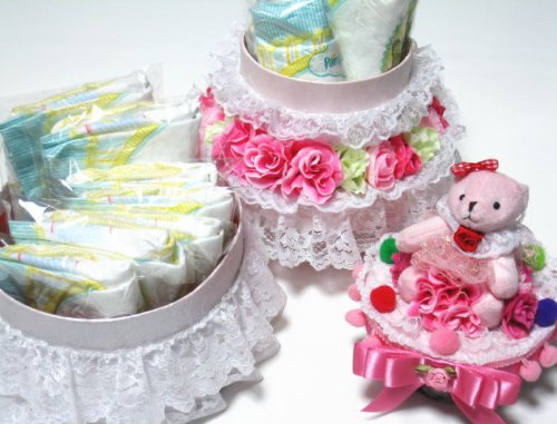 出産祝いのギフトで 赤ちゃんの健やかな成長の願いを込めて… 2段おむつケーキのボックスタイプ!! レースやお花がふんだんで豪華! 「出産祝いのオムツケーキだからいつまでもそのままにしておきたい! でもおむつを使うとオムツケーキの形が壊れちゃう…」 ボックスに入ったおむつだからお使いいただいてもおむつケーキの形は壊れることなくそのまま! お好みのものを入れたり 部屋のお飾りにしたり 楽しみ方はいろいろ♪ 思い出のオムツケーキ、後々までお部屋に… ハンドメイドで一品ごと丁寧にお作りしています。 ギフトラッピングをしてのお届けです。 ご注意:おむつケーキの画像とのカラーの誤差、手作りのための多少の形状の違いやパーツ等の配色、配置の違いが生じる事があります