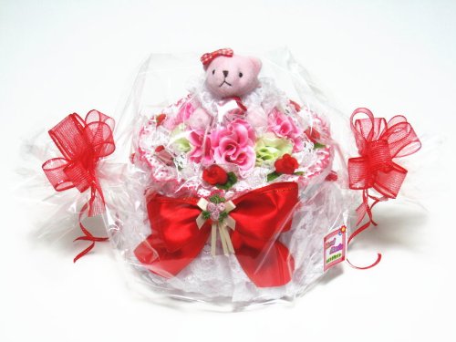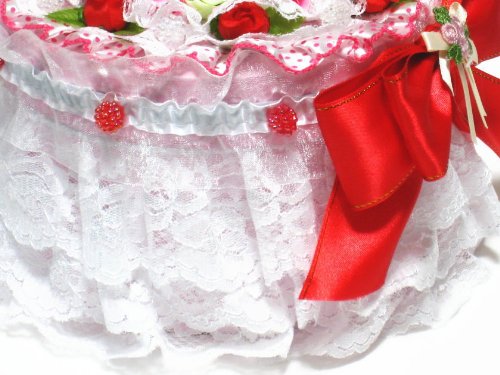 3層のレースと大きなリボンやお花でデコレーションした円形 おむつケーキ (レッド)