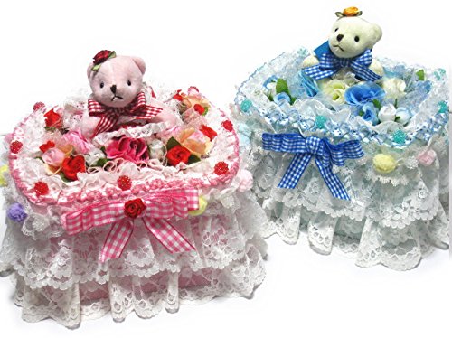 - 2色からお選びいただけます 白いレースやお花をふんだんに、ギンガムリボンがポイントの可愛く豪華に仕上げた、1段角円形のおむつケーキ/ボックスタイプ