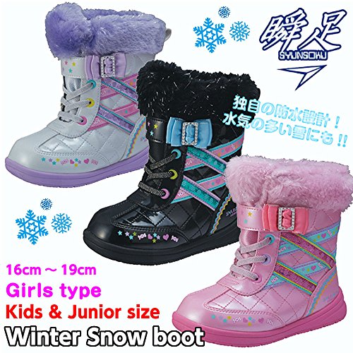 スノーブーツ 子供用 瞬足レモンパイ レインブーツ 女の子 長靴 雨靴 防寒ブーツ キッズ・靴(ブラック18cm)