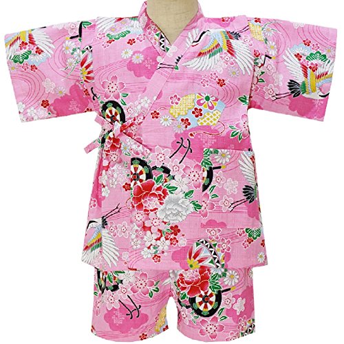 和柄 さくら 甚平 スーツ 日本製 夏物 パジャマ SAKURA KANJI WAGARA j-71654 100cm ピンク