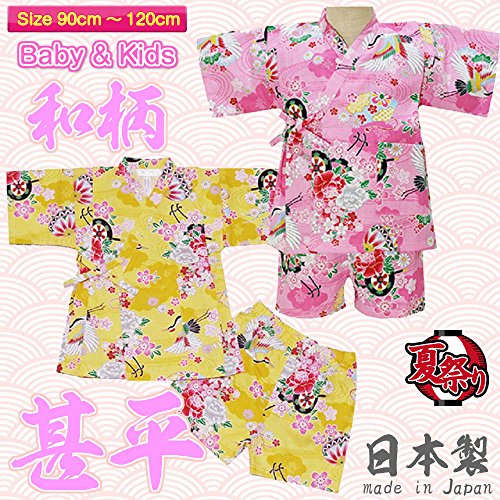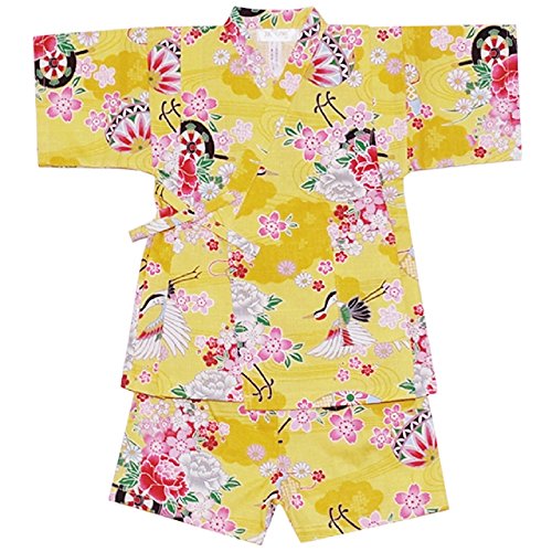 和柄 さくら 甚平 スーツ 日本製 夏物 パジャマ SAKURA KANJI WAGARA j-71654 100cm イエロー
