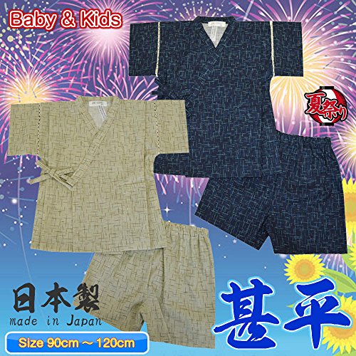 和柄 甚平 スーツ 日本製 夏物 パジャマ j-71613 110cm ベージュ