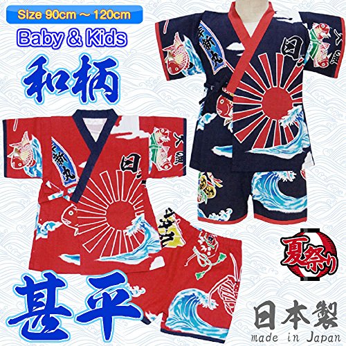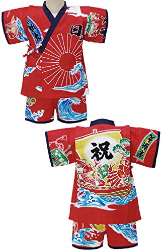和柄 大漁旗 甚平 スーツ 日本製 夏物 パジャマ TAIRYOUKI KANJI WAGARA j-71655 95cm レッド