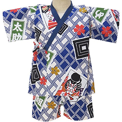 和柄 歌舞伎 甚平 スーツ 日本製 夏物 パジャマ KABUKI KANJI WAGARA j-71613 80cm ネイビー