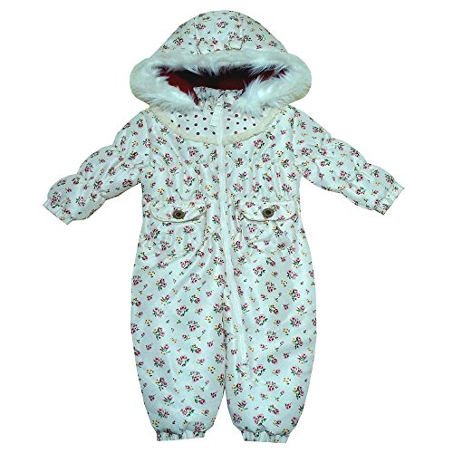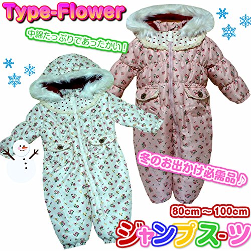 キッズ・ベビー スキーウエア ファーフード 中綿たっぷり ジャンプスーツ 女の子 女児 (アイボリー 80cm)
