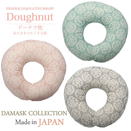 ベビー枕 限定カラー【ダマスクモーチフ】エスメラルダ ドーナツ枕【日本製】(ピンク)赤ちゃん 頭の形が良くなる【まる型】ベビー枕 ベビーまくら 枕