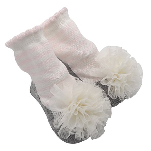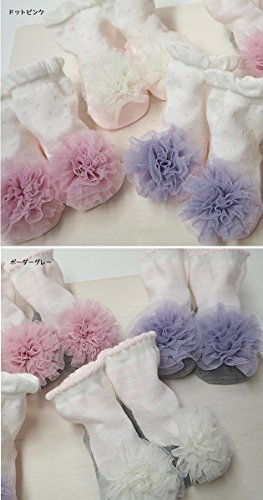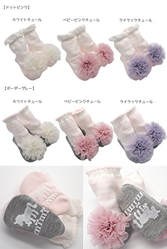 大きなチュールコサージュ ベビーソックス(ボーダーホワイト)日本製 mimi ミミ【 8cm - 11cm ・0-11ヶ月頃】